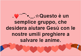 - ╰☆╮♠♤ ♥♠╰☆╮ È molto importante che ognuno formi il suo gruppo con persone fidate, anche di solo due persone, qua"Per ogni gruppo di preghiera costituito, per recitare le preghiere della Crociata, vi sarà data una grazia speciale da Mio Figlio prezioso. Egli è presente in ogni gruppo e vi renderà consapevoli di questo", per saperne di più qua. Cerchiamo di formare il nostro gruppo della crociata di preghiera con persone fidate, anche solo di due persone, qua